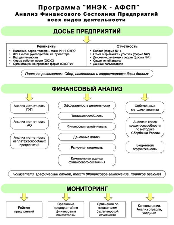 -ПК "ИНЭК-АФСП" – анализ финансового состояния предприятий и организаций любых видов деятельности;