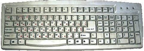 Наиболее распространенным расположением клавиш (раскладкой клавиатуры) является QWERTY (ЙЦУКЕН). Есть около 60 клавиш с буквами, цифрами, знаками пунктуации и другими символами, и еще около 40 клавиш, предназначенных для управления компьютером и исполнения программ. Продублированы клавиши управления курсором, а также клавиши Ctrl, Alt, - (Win). Функциональные клавиши F1…F12 вынесены в верхний ряд.