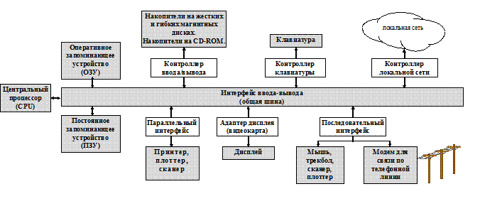 Кроме того к компьютеру могут подключаться принтер - для вывод на пе-