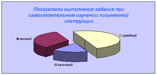 Результаты выполнения задания после самостоятельного изучения письменной инструкции