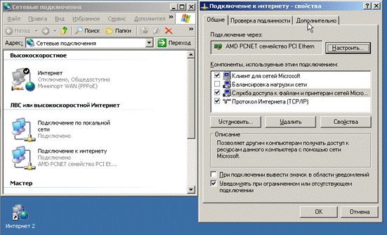 На узловом компьютере ICS обеспечивает подключение через второй сетевой адаптер для существующей сети TCP/IP. Чтобы настроить главный компьютер ICS, необходимо войти в систему с помощью учетной записи члена группы «Администраторы».