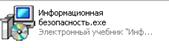 · В экспертной системе использованы элементы управления: гипертекст и кнопки для перехода по ссылкам; электронный учебник занимает на диске 3 Мб. Файл для запуска электронного учебника называется «ИнфБез».
