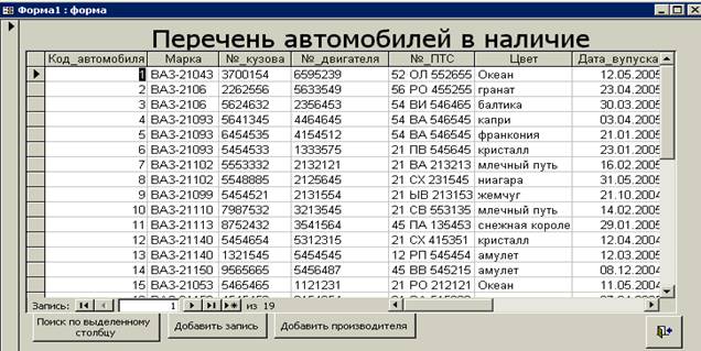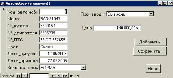 Курсовая работа: Разработка базы данных Автосалон АЛМАЗ с помощью программы Microsoft Access
