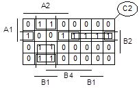 Оскільки вибрано комбінаційний спосіб побудови пристрою множення, постає задача побудови таблиці істинності пристрою(табл. 2.1). 2-розрядне число позначене А, а 3-розрядне В. Відповідно вихідна сукупність сигналів – С. Числа, записані після букви позначення, означають порядок розряду.