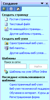 Если при открытии окна приложения FrontPage в нем отображается новая пустая страница, то разработку веб - страницы можно осуществлять на базе этой страницы. Если при открытии редактора, отображается пустое главное окно, то для создания новой пустой страницы необходимо выполнить команду Файл/Создать и выбрать в области задач "Пустая страница".