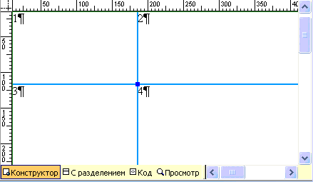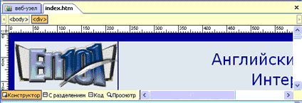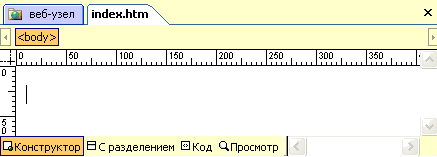 В режиме "С разделением" - на экране отображается Web-страница одновременно в режиме Код и в режиме Конструктор. В режиме просмотра Web–страница имеет вид аналогичный ее отображению в Web–браузере.