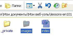 Вставляем сохраненное содержание папки EN101 из буфера обмена во вновь созданную папку веб-узла lessons-en101, которая представлена на рисунке.