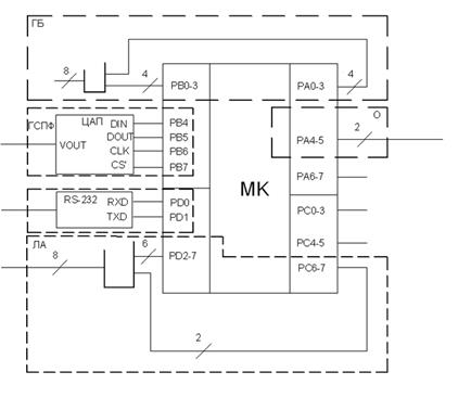 Рисунок 4. Структурна схема розподілу ресурсів мікроконтролера між приладами