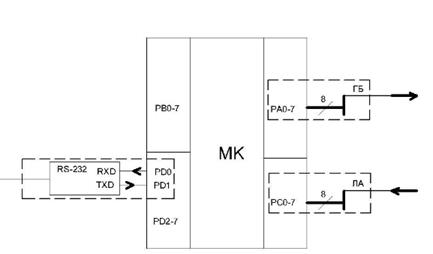 Для реалізації логічного аналізатора використаються розряди 8 виходів мікроконтролера (для введення даних).