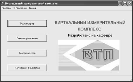 Програмне забезпечення ПК складається з підпрограми, що генерує головне вікно ВВК, з якого користувач має можливість вибрати необхідні йому для роботи прилади. Головне вікно ВВК представлене на рисунку 7: