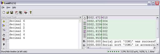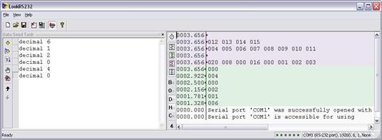 Для відлагодження протоколу обміну даними використовувалась зручна програма LookRS232, що слідкує за даними, що передаються через СОМ-порт.