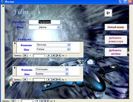 Створена база даних максимально полегшує роботу ведення записів про фільми та диски, за рахунок використання зручних екранних форм і можливості швидкого пошуку в базі даних тієї чи іншої інформації, наприклад, пошук потрібного фільму за назвою, за прізвищем акторів, що у ньому грають або за прізвищем режисерів . Для реалізації даної програми була використана СКБД Microsoft Access 2000.