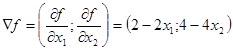 2. Ітерація . Градієнт цільової функції даної задачі в точці