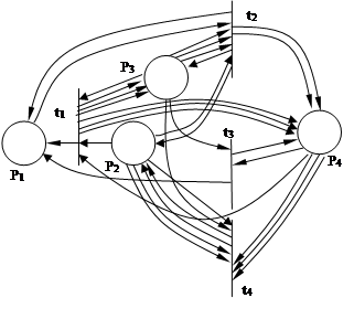I (t 3) = {p 4, p 3}; O (t 3) = {p 1,p 4};