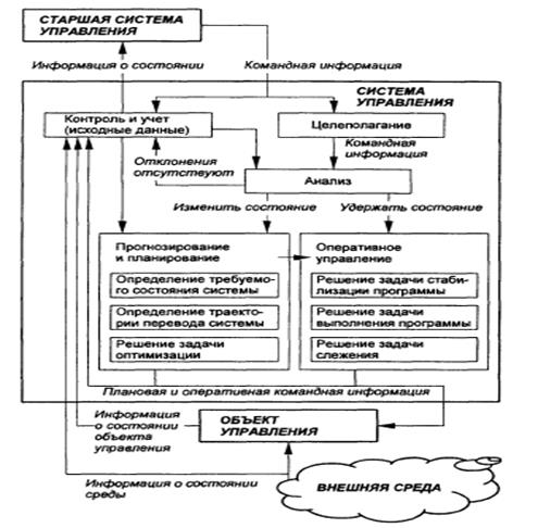 Совокупность функций управления, выполняемых в системе при изменении среды, принято называть циклом управления. Выполняя цикл за циклом, система приближается к сформулированной цели. Одно из представлений цикла управления показано на рис. 3.2. При этом от объектов управления в СУ поступает информация о текущем состоянии дел. ЛПР контролируют ее истинность, учитывают и анализируют в целях выявления отклонений от требуемого состояния и определения необходимости изменения текущего состояния.