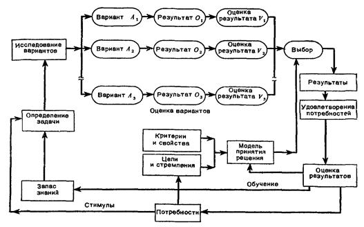 Лицо, принимающее решение (ЛПР), обычно обладает определенным уровнем знаний и опытом, которые помогают ему при рассмотрении имеющихся вариантов. Варианты – это различные стратегии, при помощи которых могут быть реализованы имеющиеся стремления. Каждый вариант ведет к одному или нескольким заранее известным результатам. До того как ЛПР сможет осуществить выбор варианта и соответствующих ему результатов, каждый возможный результат должен быть оценен, исходя из степени его полезности для реализации имеющихся устремлений. Оценка результата производится в соответствии с определенным критерием, формулировка которого обычно вводится в модель принятия решения. Из-за несоизмеримости качеств различных вариантов возникают проблемы количественного определения и измерения. Процесс выбора состоит в выборе наилучшего варианта. Реализация выбранного варианта приводит к результатам, которые должны в определенной степени удовлетворить начальные потребности. Чтобы оценить степень, в которой вариант удовлетворяет исходным требованиям, проводится новый цикл.