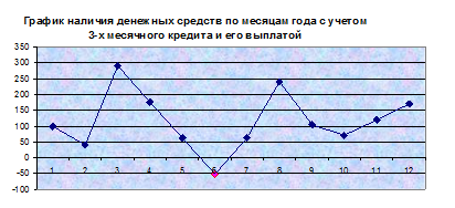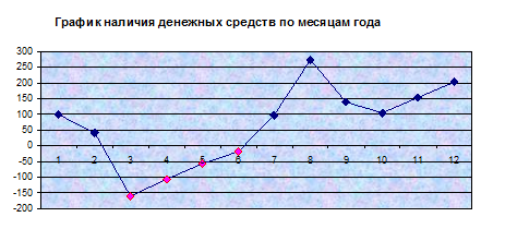 В расчетной таблице и на графике видно, что согласно данному финансовому плану, несмотря на существенные ежемесячные финансовые поступления предприятие будет иметь дефицит средств с марта по июнь.