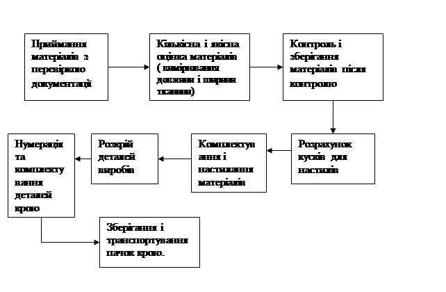 Виробничий процес підготовчо-розкрійного цеху складається з таких операцій :