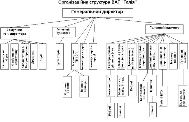 На ВАТ «Галія» використовується лінійна організаційна структура (подана нижче).