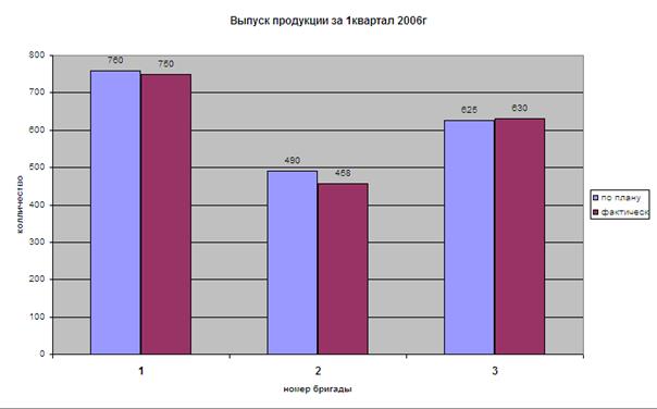 5. Результаты плановых и фактических показателей выпуска продукции за квартал по каждой бригаде представить в графическом виде.