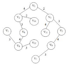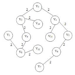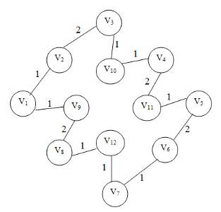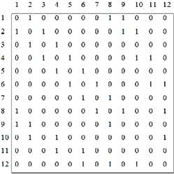 1) построим матрицу смежности V12×12 = {vij };