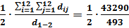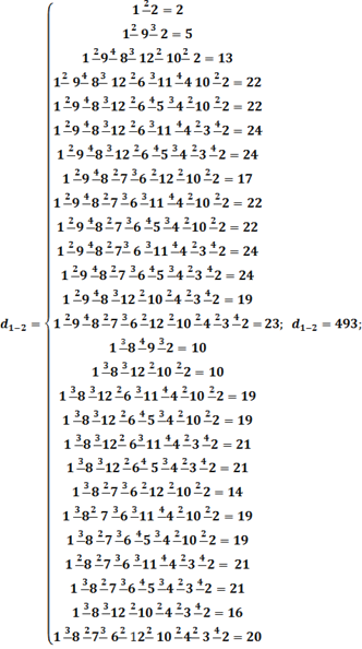 3) рассчитаем диаметр структуры и нагрузку сети d = extri,j dij :