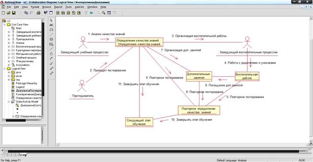 В данном разделе я так же раскрыл вариант «Определение качества знаний» с помощью кооперативной диаграммы. Данная диаграмма также как и диаграмма последовательности отражает процесс проверки качества знаний.