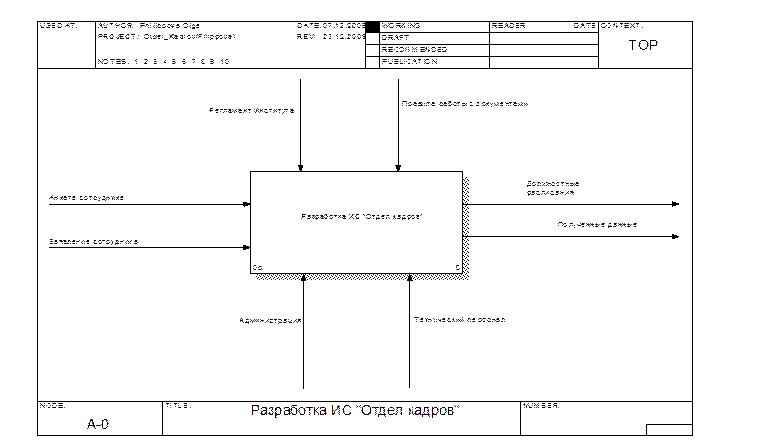 Задача системы — информационная поддержка деятельности отдела кадров. Необходимо спроектировать программное и информационное обеспечение системы.