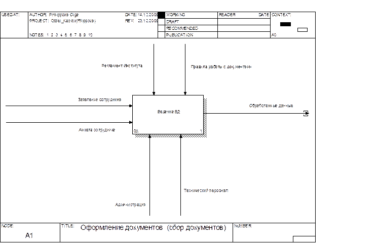 Объектом управления является отдел кадров, который предоставляет всю информацию о персонале. Сотрудники предоставляют сведения о себе, при этом заполняются анкета и заявление и в конечном итоге составляется трудовой договор с Институтом, подписываемый администрацией. Вся предоставленная информация хранится в Отделе Кадров.