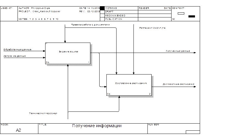 Модель IDEF0 представляет собой набор взаимоувязанных диаграмм. Каждая диаграмма является описанием системы или ее отдельных функциональных блоков в рамках некоторого уровня детализации.
