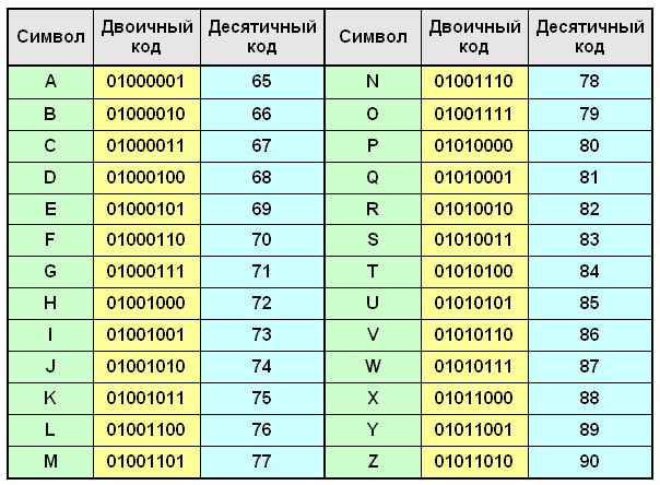Таким образом, двоичный код является универсальным средством кодирования информации.