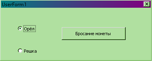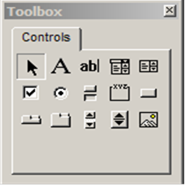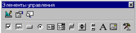 Для размещения элемента управления на листе или в форме нажмите соответствующую кнопку панели инструментов Элементы управления (Control Toolbox) и с помощью мыши перетащите рамку элемента управления в нужное место. После этого элемент управления можно перемещать, изменять его размеры, копировать в буфер обмена и вставлять из буфера обмена. Для разработки простейших программ удобно использовать пиктограммы (рис. 2.2).