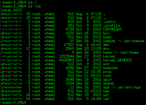 Возможный вид списка файлов и директорий в корневом каталоге Unix/Linux.