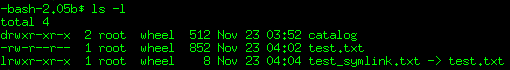 Просмотр атрибутов файлов с помощью команды ls в Unix/Linux.