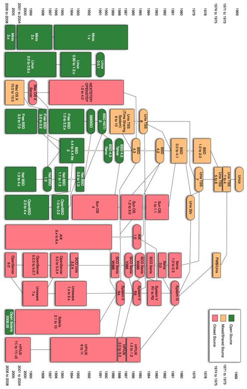 Наибольшее распространение получили две весьма несовместимые линии версий UNIX: линия AT&T - UNIX System V, и линия университета Berkeley-BSD. Многие фирмы на основе этих версий разработали и поддерживают свои версии UNIX: SunOS и Solaris фирмы Sun Microsystems, UX фирмы Hewlett-Packard, XENIX фирмы Microsoft, AIX фирмы IBM, UnixWare фирмы Novell (проданный теперь компании SCO), и список этот можно еще долго продолжать.