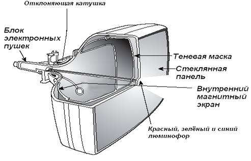 На рис.1 показан разрез типичного электронно-лучевого монитора.