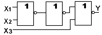 Рис. 7. Побудова логічних елементів із трьома входами на основі елементів із двома входами