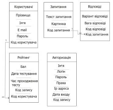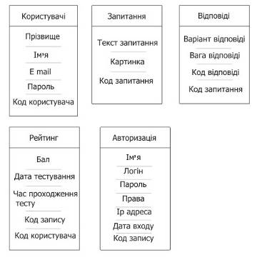 За допомогою проекту ведеться облік учасників, тобто тих, хто проходить тест; додаються/видаляються питання та відповіді. В такому процесі проводиться постійний обмін даними між модулями. На рисунку 2.1 представлена схема інформаційних потоків між клієнтською частиною, веб-сервером та сервером бази даних.