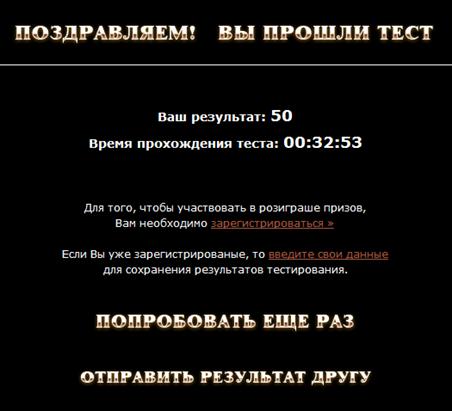 Після, того як користувач дав відповіді на всі запитання (їх кількість задається в системі управління), він бачить результат. Приклад результату зображений на рисунку 3.9.