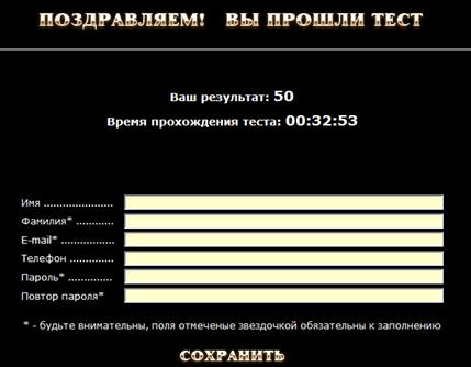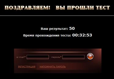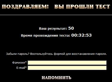 клієнтська частина, де кожен користувач може пройти тест, отримати результат, а також переглянути рейтинг учасників;