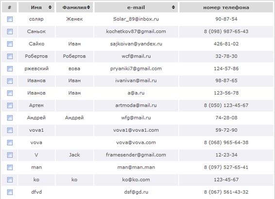 DeleteData($table_names, $list) – призначена для видалення даних про користувачів, має параметри: назва таблиці, масив номерів записів;