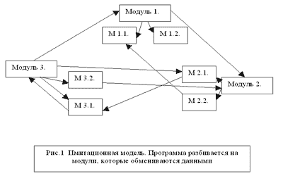 Имитационная. Предположим, есть абсолютно неавтоматизированное предприятие, оно состоит из отделов, сотрудники обмениваются бумажками, считают на калькуляторах и т.п. Вот мы решили автоматизировать это предприятие исходя из имитационной концепции. Для этого мы выясняем, что делает каждый отдел, и, таким образом, получаем некоторый набор задач по количеству отделов, которые и решаем. Хочу четко обозначить, что мы понимаем под словом "отдел". Совсем не обязательно, что это будет именно ОТДЕЛ, в том понимании, как это принято на предприятиях. Это могут быть и несколько отделов, и группы людей в разных отделах и подразделениях. Важно, чтобы была возможность сгруппировать задачу таким образом, чтобы при автоматизации предприятия она разбивалась на подзадачи. К примеру, если в предприятии 10 складов, то пишется 1 модуль под названием "Склад", ибо он решает задачу складского учета.