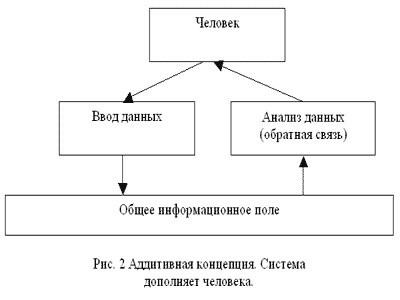 Аддитивная концепция: информационная система дополняет человека (отсюда и название - аддитивная).