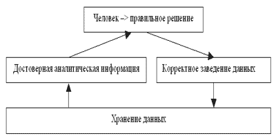 Все просто: достоверная аналитическая информация - человек - правильное решение - корректное заведение данных по этому решению - хранение данных - аналитическая информация
