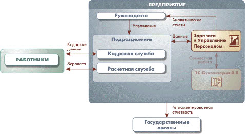Предметная область, автоматизируемая конфигурацией «Зарплата и Управление Персоналом», поясняется следующей схемой: