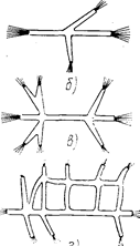 Конструкции жгутов определяются особенностями конструкций каркасов и требованиями к обслуживанию и ремонту аппаратуры. Жгуты делят на межблочные и внутриблочные, которые, в свою очередь, подразделяют на плоские, объемные, с подвижными ответвлениями. Различают их и по степени сложности (рис. 15.1): числу ответвлений и замкнутых ветвей.