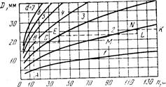 Рис. 2. Технологическое членение жгута на Рис. 3. Номограмма для определения диаметра