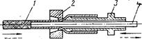 Для извлечения конца изолированного провода 2 через экранирующую оплетку 3 острым инструментом раздвигают жиль: оплетки и через образовавшееся отверстие протаскивают провод (рис. 7). Наиболее распространенным инструментом является