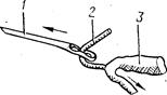 Рис. 6. Схема удаления участка Рис. 7. Схема извлечения иглой конца
