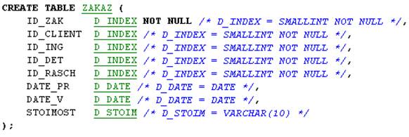 | zakaz | Id_zak | smallint | + | + | D_INDEX | |